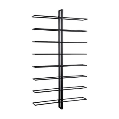 Nástěnný, kovový, černý, počet lahví 16, černý, šířka 8,5 cm, výška 90 cm, hloubka 52 cm