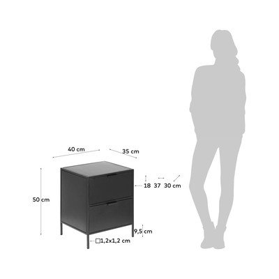 Noční stolek Shantay od značky Kave Home. Nabízí praktický úložný prostor ve dvou zásuvkách a je vyroben z odolné oceli.