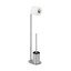 Tento volně stojící ocelový doplněk elegantně kombinuje držák na toaletní papír s integrovanou WC štětkou. Štětka je umístěna v samostatné nádobce na základně stojanu a její hlava má průměr 7,5 cm.