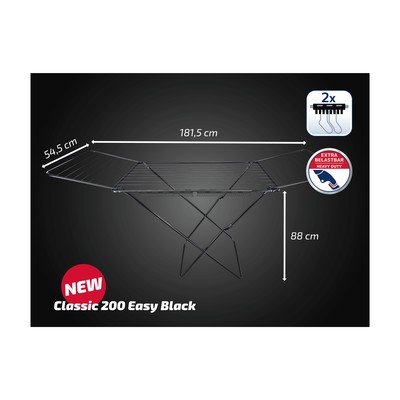 Sušák na prádlo Classic 200 Easy od značky LEIFHEIT je praktickým pomocníkem pro každou domácnost. Díky rozkládací konstrukci a šířce pouhých 51 cm se s ním snadno manipuluje i v rozloženém stavu, takže se vejde i do menších prostor.