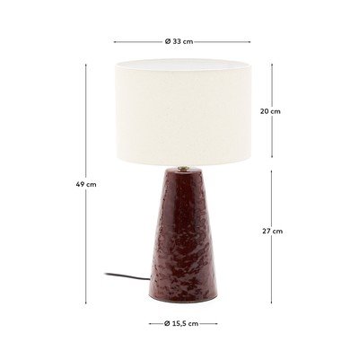 Stolní lampa Drava od značky Kave Home zaujme svou kónickou glazovanou keramickou základnou s texturovaným efektem. Válcové bavlněné stínidlo jemně filtruje světlo a pomáhá tak vytvořit útulnou a vyváženou atmosféru v každé místnosti.