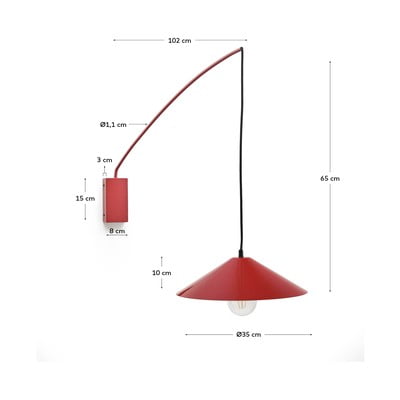 Nástěnné svítidlo Kally od značky Kave Home je ideálním doplňkem pro ty, kteří hledají originální a stylové osvětlení. Svítidlo je vyrobeno z kovu a zaujme svým netradičním tvarem s kónickým stínidlem zavěšeným na textilním kabelu. Pro použití je potřeba dokoupit žárovku s paticí E27 o maximálním výkonu 40 W.