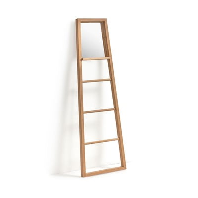 Dekorativní žebříky mají v interiérech mnoho využití. Tento kousek od značky Kave Home je nejen tvořen pevným mahagonového dřevem, má ve svém designu zabudované zrcadlo a je i odolný vůči vlhkosti, což z něj dělá perfektního společníka do koupelny na odkládání ručníků. Zvláště pak, pokud vás baví design v boho či skandinávském stylu.