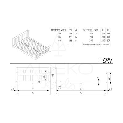 90x200 cm, s roštem, z borovicového dřeva, povrchová úprava: bez ošetření/povrchová úprava: kartáčování, v přírodní barvě