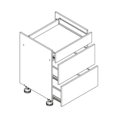 Dobré vědět: Vzhledem k tomu, že jsou korpusy dodávány odděleně, si pořadí skříněk můžete uspořádat dle svého. U skříněk s bočním otevíráním si dále můžete zvolit, zda se budou otevírat na levou či pravou stranu. Nedílnou součást tvoří také soklové lišty odpovídající šířce skříněk a nastavitelné nožky (100 mm), jejichž výšku lze upravit o přibližně 2 cm a vyrovnat tak případné nerovnosti podlahy.