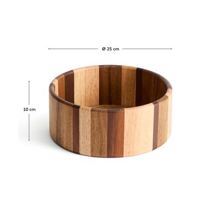 Tato miska je navržena tak, aby byla nejen funkčním, ale i dekorativním prvkem. Díky svému pruhovanému vzoru z různých dřev se skvěle hodí do kuchyně i jídelny, kde poslouží k podávání pokrmů nebo jako stylová dekorace.