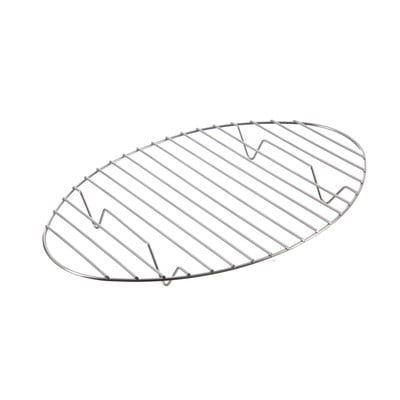 Oválný rošt z nerezu má rozměry 33 x 21 x 3 cm.