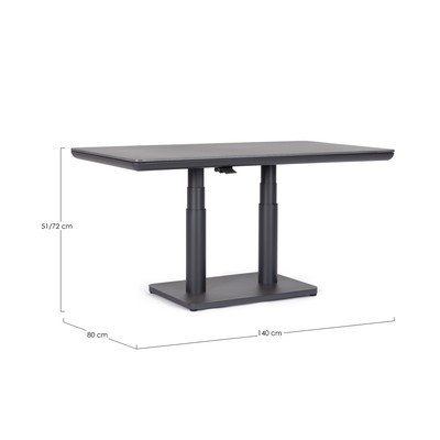 Miguel od značky Bizzotto je zahradní jídelní stůl, který se stane praktickým doplňkem vaší terasy nebo zahrady. Jeho konstrukce je vyrobena z hliníku s práškovým nástřikem, zatímco deska stolu je ze slinutého kamene o tloušťce 11 mm. Tento materiál je přírodním kamenem zpracovaným za vysokých teplot, což mu dodává odolnost. Díky rukojeti můžete stůl snadno nastavit do výšky od 51 do 72 cm, což oceníte při různých příležitostech. Celkové rozměry stolu jsou 140 x 80 cm.