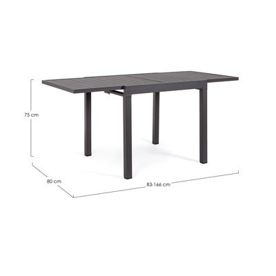 Hliníkový, antracitový, 80x83 cm, délka po rozložení 166 cm
