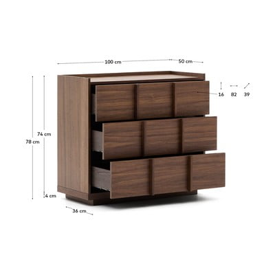V dekoru ořechu, z MDF, povrchová úprava: dýha/povrchová úprava: lak, hnědá, šířka 100 cm, výška 78 cm, hloubka 50 cm