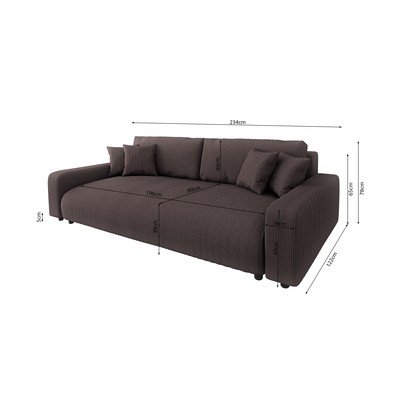 Manšestrová, rozkládací/s úložným prostorem, hnědá, trojmístná, šířka 234 cm