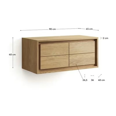 Závěsná skříňka pod umyvadlo Kenta od značky Kave Home. Je vyrobena z odolného teakového dřeva a poskytuje praktický úložný prostor.