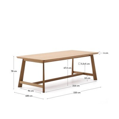Jídelní stůl Idun od značky Kave Home promění každodenní prostor v nadčasově stylové místo. Je vyroben z kombinace dýhy a masivního dřeva, přičemž deska z dubové dýhy vyniká svou hřejivostí a umožňuje ocenit jedinečnou texturu a kresbu dřeva. Masivní dřevěný obrys dodává stolu robustnost a všestrannost.