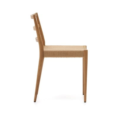 Tato jídelní židle je vyrobena výhradně z přírodních materiálů - zatímco sedák sestává z ručně pleteného papírového lanka, v případně konstrukce bylo vsazeno na masivní dřevo s certifikátem FCS zaručující jeho udržitelný původ.
