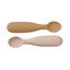 Dětské lžičky Olive Mix od značky Cam Cam Copenhagen v sadě dvou kusů ze silikonu. Jejich ergonomický tvar a speciální tečky na špičce pomáhají zabránit zalykání a usnadňují krmení.