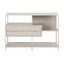 Minimalistická knihovna je ideální k ukládání knih nebo dekorací. Obsahuje 3 police, 2 zásuvky a oboustranný zadní panel. Díky kombinaci černého rámu a dekoru divokého dubu je knihovna nadčasovým kouskem, který se bude skvěle vyjímat v jakémkoliv interiéru. Práškově lakovaný rám je vyroben z oceli s hrubým nástřikem. Certifikát FSC™ dokládá, že knihovna vznikla v souladu se zásadami udržitelného lesního hospodářství.