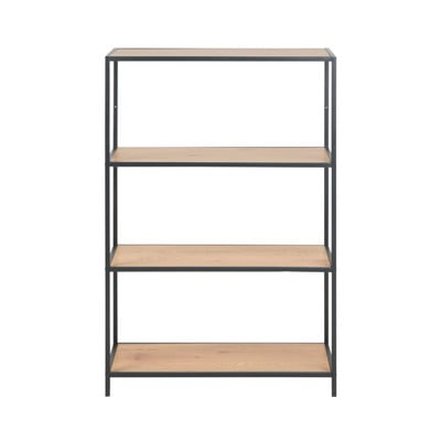 Pro kolekci Seaford je typická vzhledově subtilní kovová konstrukce v černé barvě. Ta je v tomto případě doplněna o police v dekoru divokého dubu.
