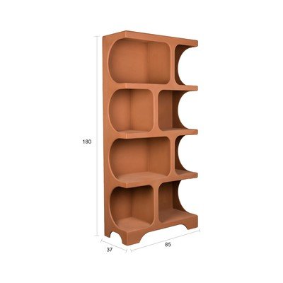 Knihovna Dundee od značky Dutchbone. Unikátní oblé tvary a zemitý terakotový tón vnesou do interiéru hravost a útulnou atmosféru.