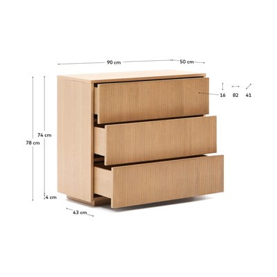 V dekoru dubu, z MDF, povrchová úprava: dýha/povrchová úprava: lak, v přírodní barvě, šířka 90 cm, výška 79 cm, hloubka 50 cm