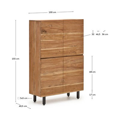 Z masivu akáciePovrchová úprava: běleníMatnáV přírodní barvěŠířka 100 cmVýška 155 cmHloubka 40,5 cm