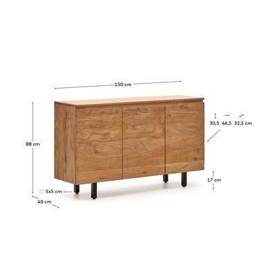 Komoda Uxue od značky Kave Home přináší do každého prostoru čistý a moderní design. Je vyrobena z masivního akáciového dřeva, jehož povrchová úprava zvýrazňuje přirozenou kresbu a dodává nábytku jedinečnou hřejivost a světlost.
