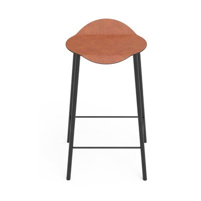 Sedák barové židle je čalouněný recyklovanou kůží, což zajišťuje pohodlí a snadnou údržbu. Celkový vzhled doplňují štíhlé nohy, které židli dodávají lehkost a stabilitu.