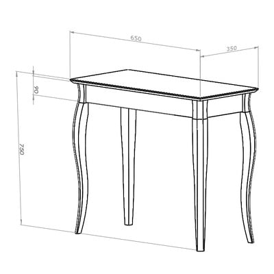 Stolek má na výšku 74 cm a vlastní deska měří 65 x 35 cm.