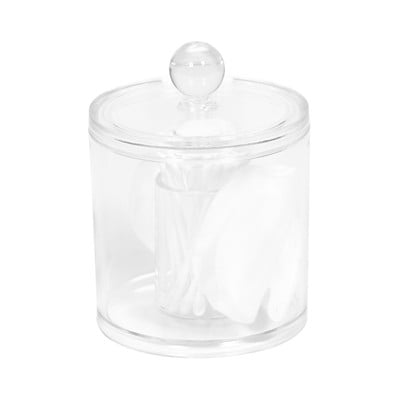 Snadno využitelný organizér na vatové tampony a tyčinky, pěkný design a velikost naprosto dostačující.