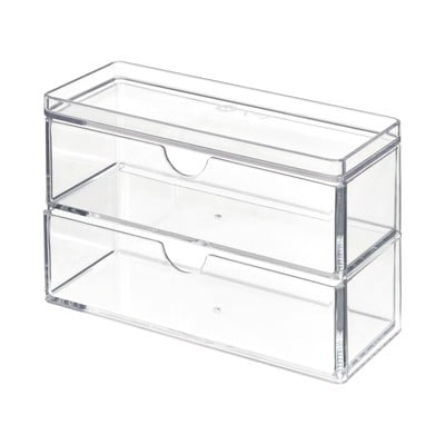 Organizér na vatové tampony značky iDesign/The Home Edit je vyroben z mimořádně odolného plastu. Díky své velikosti se tak akorát vejde do koupelnových skříněk a na úzké poličky.