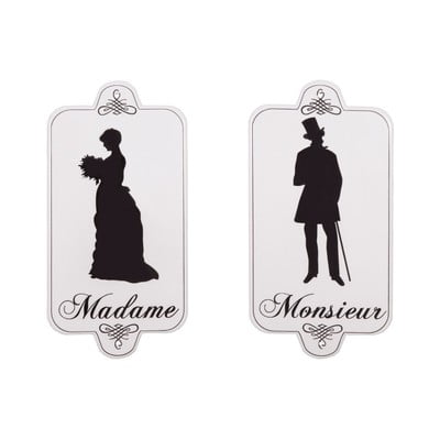 Cedule v sadě Madame Monsieur2 ks, kovové, 16,5x33 cm