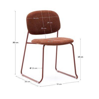 Židle Meli od značky Kave Home je stohovatelná, což usnadňuje její skladování. Opěradlo i sedák jsou čalouněné žinylkou a mají vnitřní výztuž z topolové překližky.