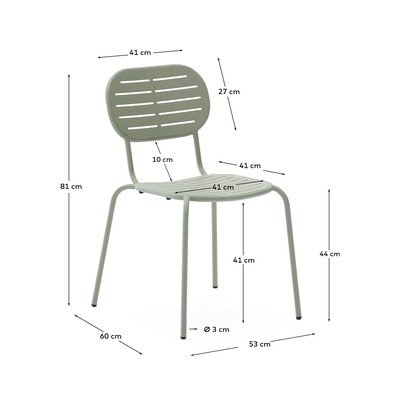 KovováStohovatelnáV mentolové barvěNosnost 160 kgŠířka 53 cmVýška 81 cmHloubka 60 cm