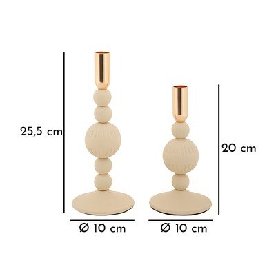 Jeden svícen má průměr 10 cm a výšku 20 cm, zatímco druhý měří 10 cm v průměru a 25,5 cm na výšku. Otvor pro svíčku má průměr 2,5 cm. Díky svému provedení se skvěle hodí k dotvoření elegantní atmosféry na stole nebo komodě.