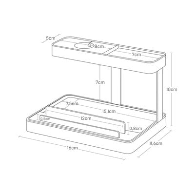 Praktický stojánek od značky Yamazaki vám umožní odložit a zároveň nabíjet všechna zařízení na jednom místě. V horní části je otvor pro kabel a silikonová podložka pro chytré hodinky. Ve spodní části je držák pro telefon, tablet a prostor pro další příslušenství.