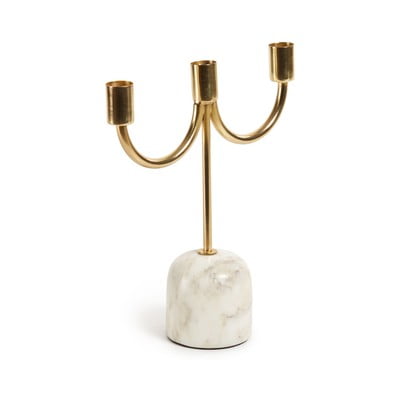 Tento svícen Perca od značky Kave Home vyrobený z kombinace mramoru a kovu ve zlaté barvě bude dominantou každého jídelního stolu. Vzhledem k přírodní povaze materiálu se výsledná barva jednotlivých produktů může lehce lišit. Tento fakt však není na škodu, ale pouze dodává exkluzivitu každému z kousků.