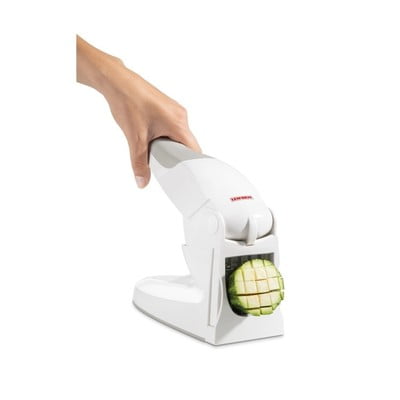 Kráječ na zeleninu a brambory Leifheit je ideální pomocník do kuchyně. Díky protiskluzové rukojeti a spodní vrstvě zajišťuje bezpečné a snadné krájení. Obsahuje dvě ostré nožové vložky pro řezání tyčinek o velikosti 10 mm a 12 mm. Vhodný pro brambory, cukety, okurky či mrkev. Nože je třeba mýt ručně, ostatní části lze mýt v myčce.