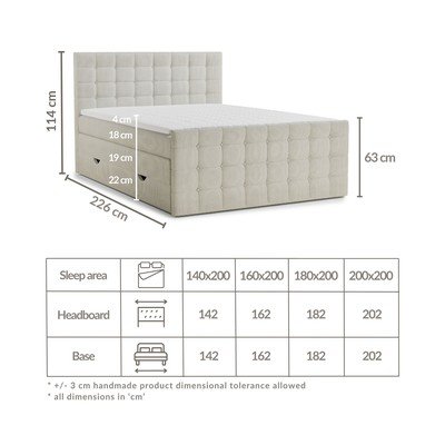 200x200 cmS úložným prostoremČalouněnáS matrací/s topperemManšestrováKrémová