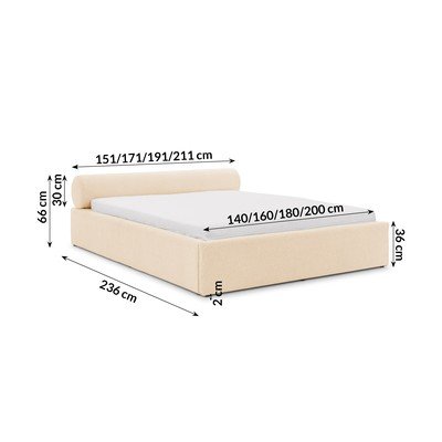 140x200 cmS úložným prostoremS roštemČalouněnáŽinylkováKrémová
