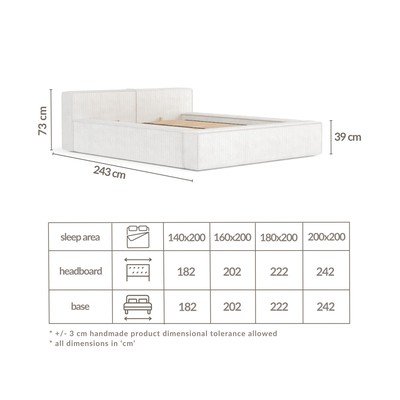 Postel Voliera představuje dokonalou rovnováhu mezi stylem, funkčností a každodenním komfortem. Její nosnost je 250 kg.