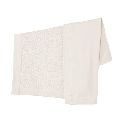 Dětská deka Seashells má přední stranu vyrobenou z 80% udržitelného a prodyšného mušelínu a 20% polyesteru (froté tečky). Zadní strana je ze 100% mušelínové bavlny.