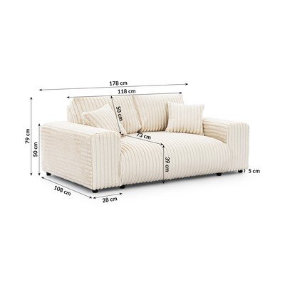 Manšestrová, krémová, voděodolná/odolné vůči skvrnám, dvoumístná, šířka 178 cm