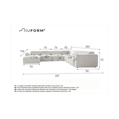 Pravý roh/do "U"KrémováVícemístnáŠířka 337 cmHloubka 265 cmHloubka sedáku 58 cm