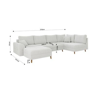 Z textilie bouclé, levý roh/do "U", bílá, vícemístná, šířka 310 cm