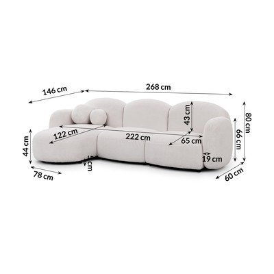 Z textilie boucléLevý roh/s lenoškouKrémováVoděodolná/odolné vůči skvrnámČtyřmístnáŠířka 268 cm