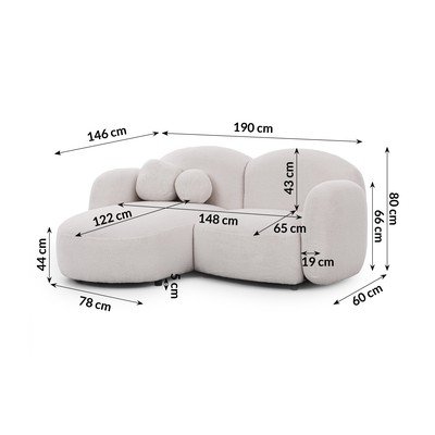 Z textilie boucléLevý roh/s lenoškouKrémováVoděodolná/odolné vůči skvrnámDvoumístnáŠířka 190 cm