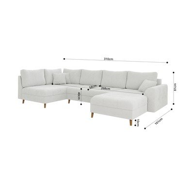 Z textilie bouclé, pravý roh/do "U", bílá, vícemístná, šířka 310 cm