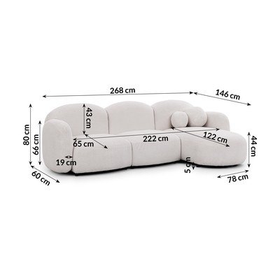 Z textilie boucléPravý roh/s lenoškouKrémováVoděodolná/odolné vůči skvrnámČtyřmístnáŠířka 268 cm