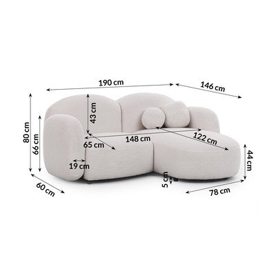 Z textilie boucléPravý roh/s lenoškouKrémováVoděodolná/odolné vůči skvrnámDvoumístnáŠířka 190 cm
