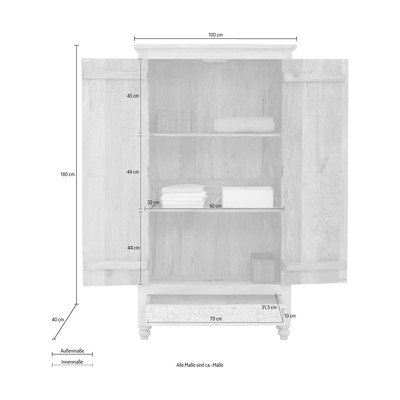 Z mangového dřevaPovrchová úprava: lakKrémováŠířka 100 cmVýška 180 cmHloubka 40 cm