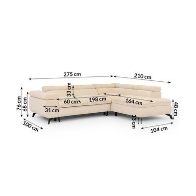 ŽinylkováPolohovací/rozkládací/s úložným prostoremPravý roh/do LKrémováVhodné pro mazlíčky/odolné vůči skvrnámČtyřmístnáŠířka 275 cm
